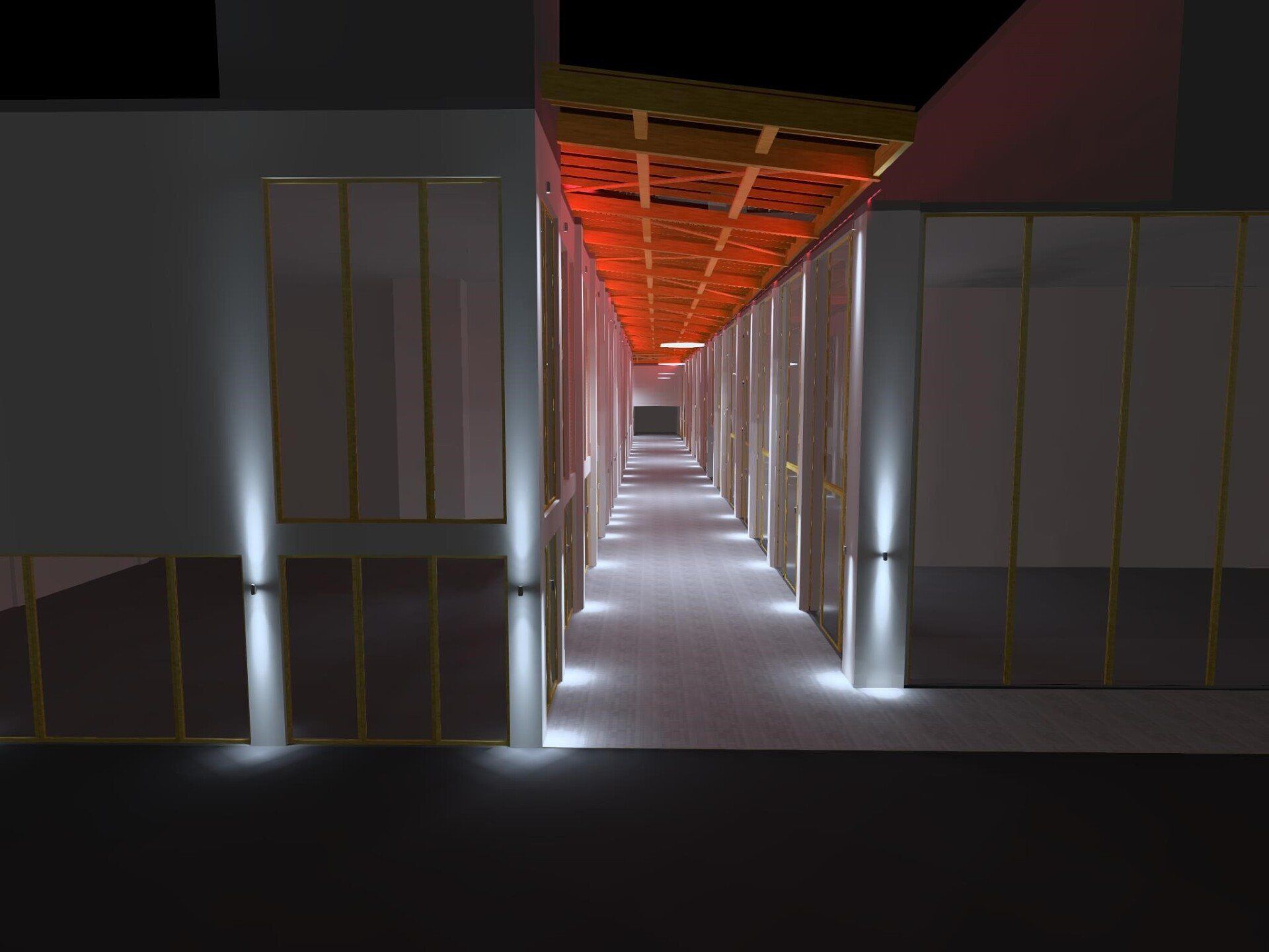 A set of lighting models were created in Dialux to provide visualisation of how the scheme might look when complete. After several iterations a final design was developed and the project moved forward. In addition to the lighting Spurlite also supplied and commissioned a simple RGB lighting control system that links to a PC to allow scenes and date/time scheduling allowing the centre manager to set the colour change lighting to specific scenes to match special events.