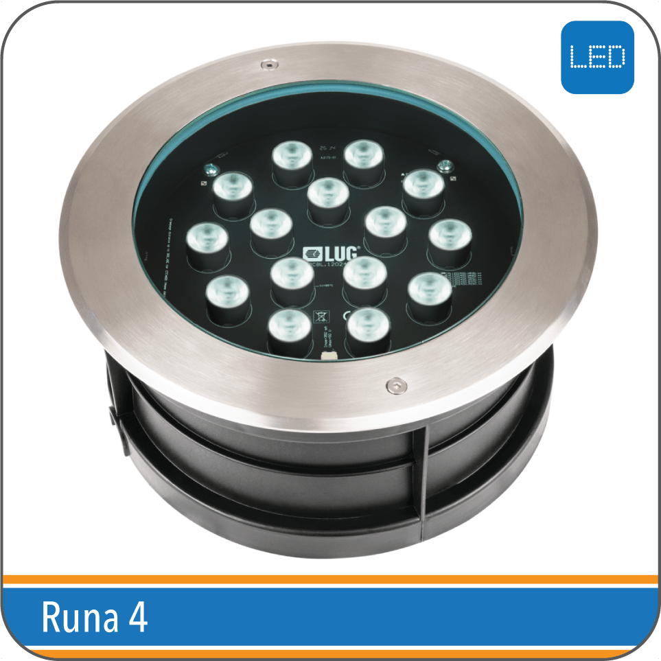 RUNA is a family of in-ground luminaires which lend themselves to decorative, architectural and 'drive over' applications.