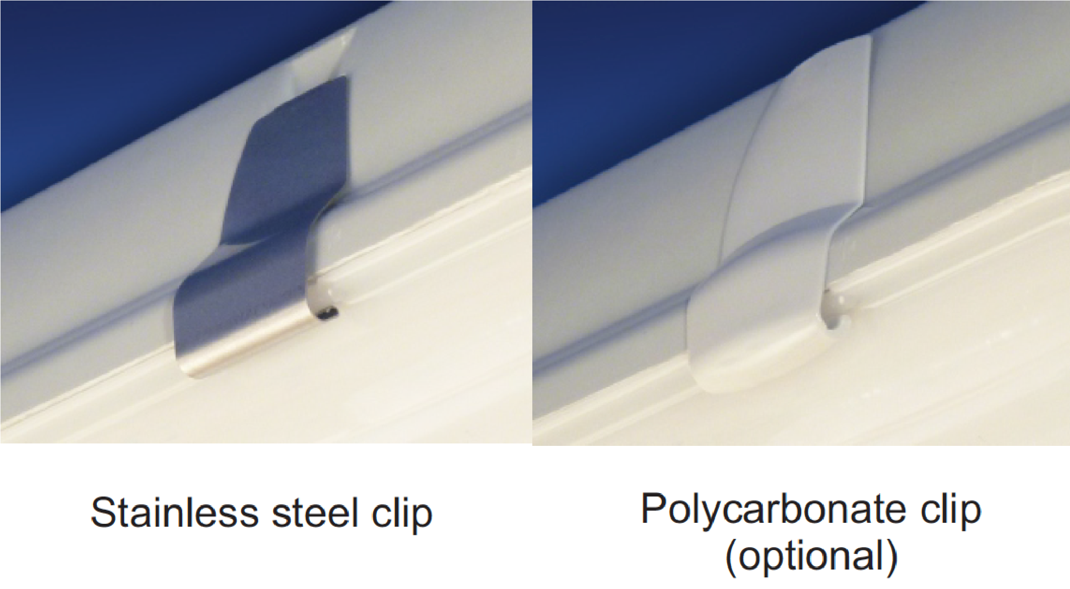 - Polycarbonate clips