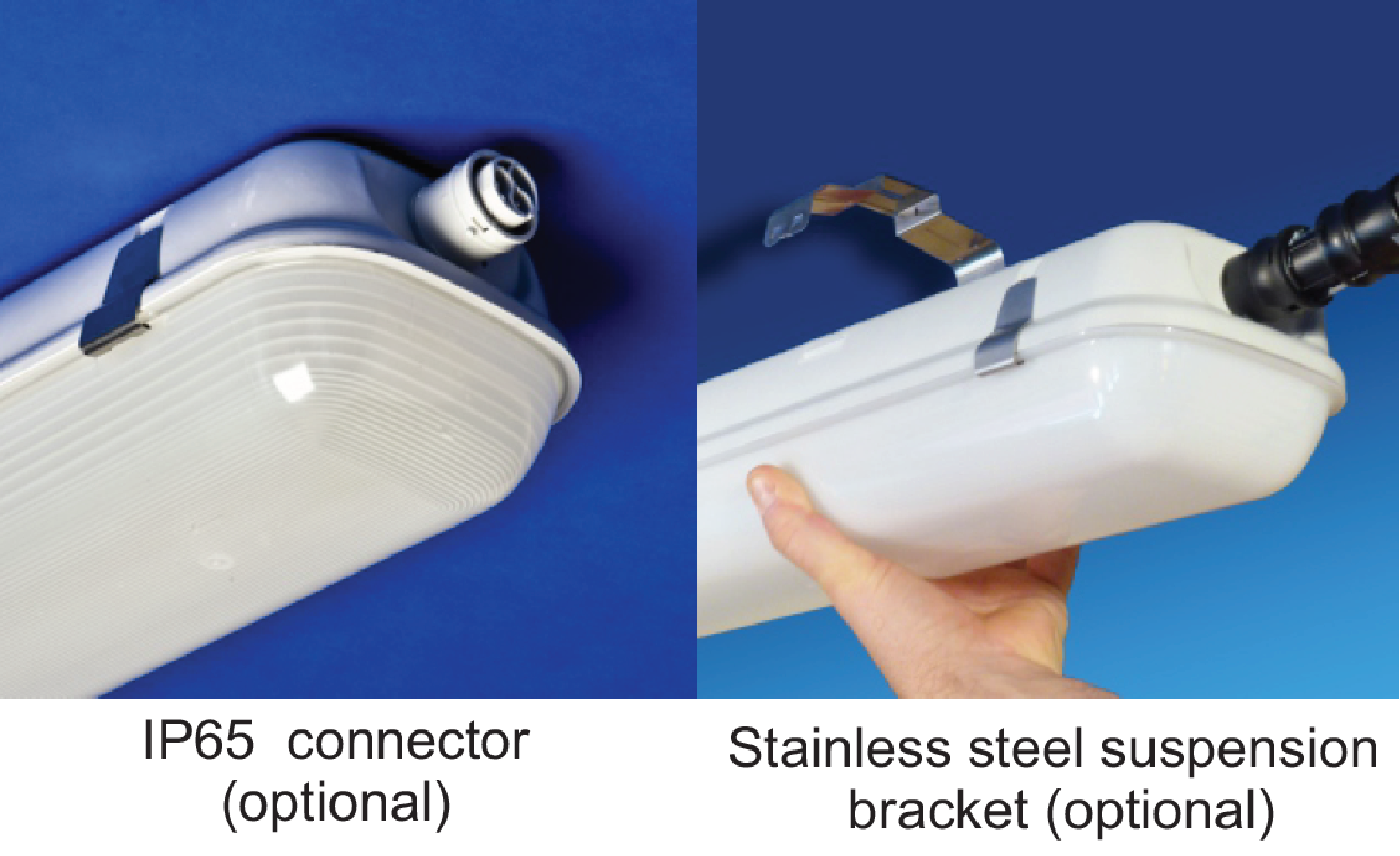 Supplied with a polycarbonate frosted diffuser as standard, stainless steel clips and a choice of accessories including dimming and emergency options.