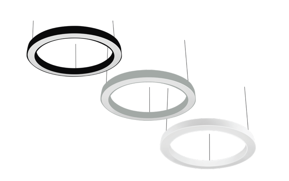 A suspended architectural luminaire, which is not only stylish in appearance, but has a substantial lumen package to go with it. Available in 500mm, 700mm, 900mm, 1200mm and 1500mm diameters as standard, with direct or direct/indirect distribution, in a range of outputs to suit your needs.