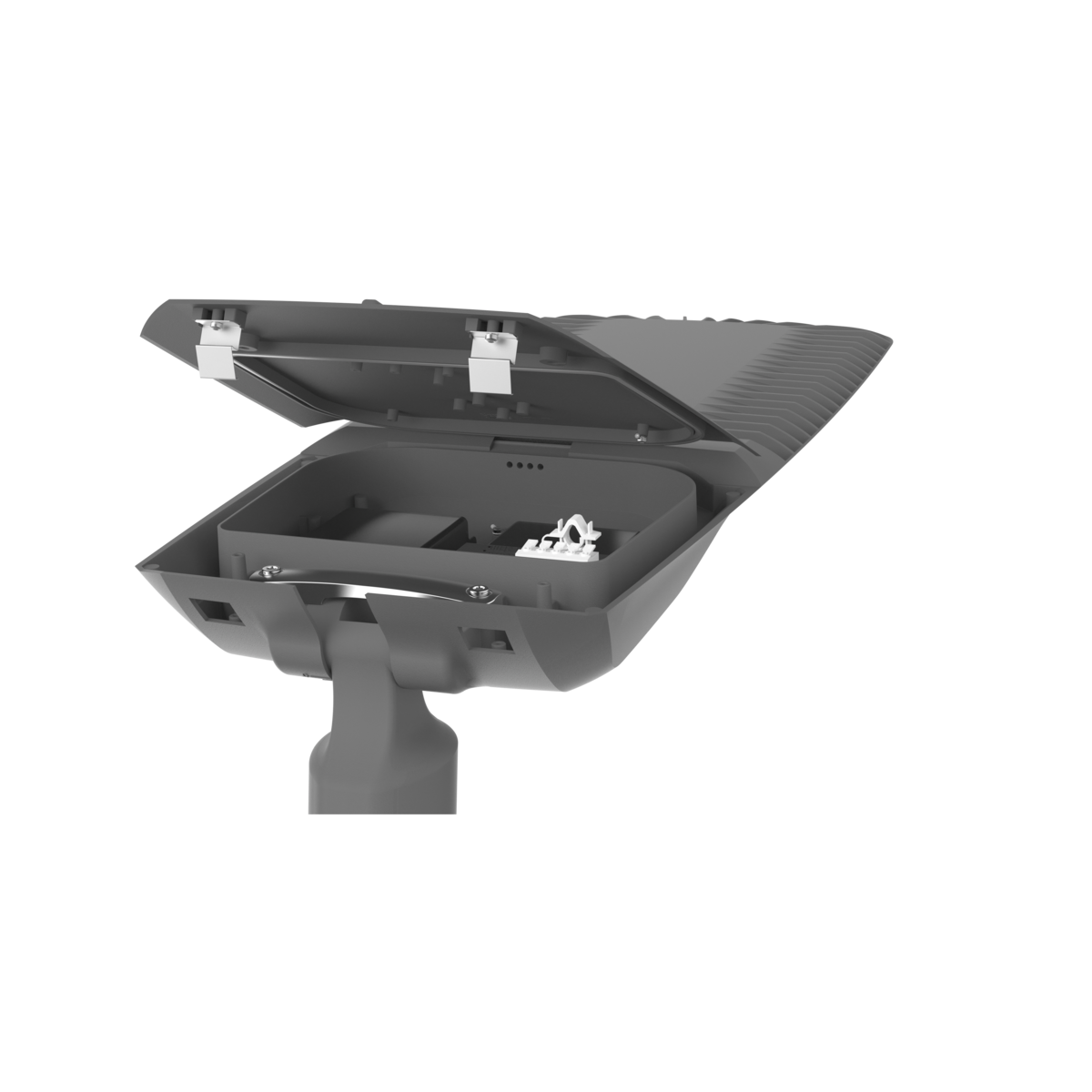 A high performance LED streetlight constructed from die cast aluminium and suitable for pole mounting. There is tool-free access to the power supply compartment by means of clips..