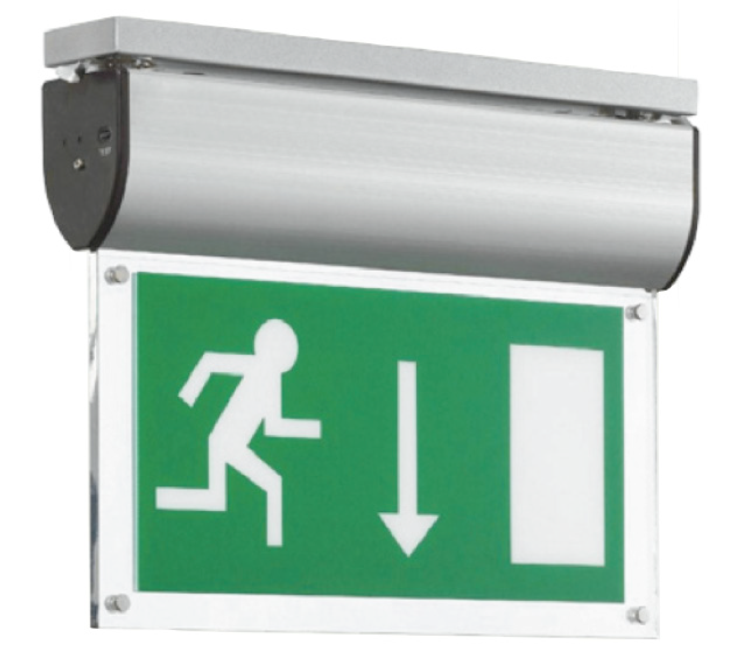 The suspended luminaires feature extruded aluminium housings and a wide range of mounting attachments allowing wall, ceiling or suspended solutions. The luminaires feature a unique method of fitting legend ‘screens’ onto the face of the acrylic panel.